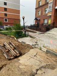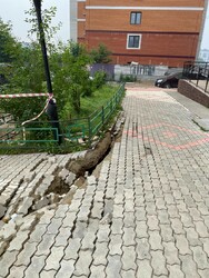 «Как только работники АКС перестали откачивать воду из колодцев, засыпали ранее образовавшийся провал, грунт стал уходить дальше, уже под пешеходной дорожкой возле первого подъезда. После дождя грунт на пешеходной дорожке обвалился еще больше! Образовалась воронка, в которую уходят и вода, и песок. Возникла реальная угроза жизни граждан, которые ходят по этой дорожке, кроме того, возникла угроза обрушения дома», – с тревогой говорят благовещенцы.