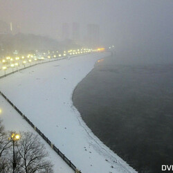 В Хабаровске начался снегопад, из-за которого с самого утра на дорогах образовались 10-балльные пробки. Разгул стихии сопровождается сильным порывистом ветром.