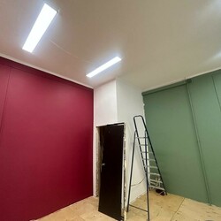 Подрядной организацией уже выровнены и покрашены стены, далее специалисты приступят к укладке линолеума и замене дверей.
