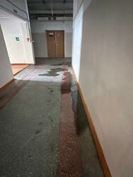 Однако вода сверху просачивается и в других местах. По сообщениям учащихся, вода бежит по стенам мужского туалета и по коридору с начала марта.