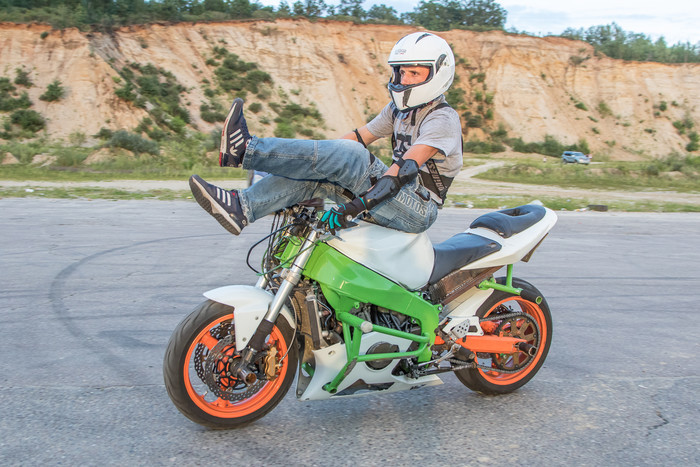 Первым шагом на пути к стантрайдингу стала подготовка мотоцикла. Для выполнения трюков на своём Kawasaki Ninja ZX-6R Павел Тимофеев усилил раму, чтобы она выдерживала падения, установил дополнительные тормоза.