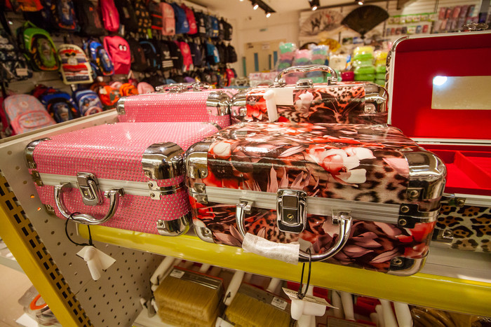 Наверняка многие девушки заглядывались на яркие шкатулки для всякой женской мелочёвки. Они и бархатные, и кожаные, и со стразами. Стоит такое удовольствие обычно в районе 4 000 рублей. В этом же супермаркете цена шкатулки при том же качестве, что и везде, не поднимается выше 2 000.