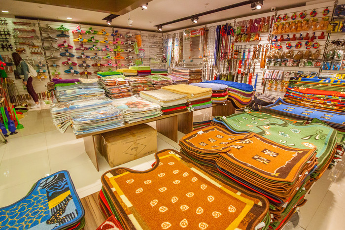 Также в большом ассортименте ковры и паласы. При этом комплект ковриков для совмещенных санузлов стоит 500 рублей. Двухметровые ковры – около 2 000 рублей.
