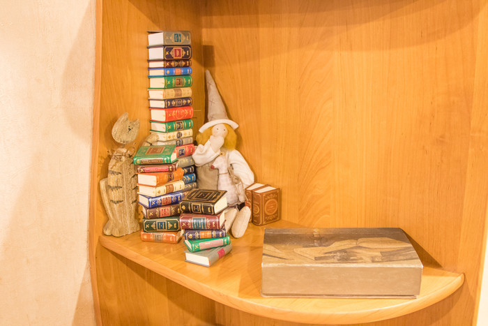 Оскар Уайльд, Лев Толстой, Виктор Гюго и многие другие представители российской и зарубежной классики поместились на одной полке. По соседству с ними – шкатулка в виде книги и деревянная кошка. Охраняет эту книжную полку – тряпичная кукла-тильда, которую Елена Печкина сшила сама.