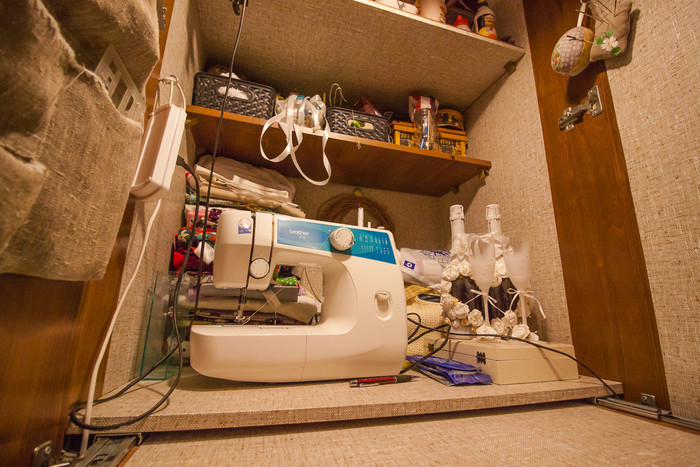 «Пять лет назад я начала мастерить куклы-тильды. И встал вопрос о рабочем месте. Раньше это был обычный шкаф. Муж переделал его: сделал полки и выдвижную столешницу для швейной машинки», – откровенничает Елена Печкина.