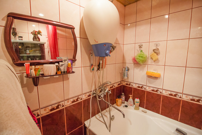 «На самом деле здесь старый ремонт, оставшийся от предыдущих хозяев. До санузла у меня просто руки ещё не дошли, чтобы переделать по-своему. Хотя очень хочется! Но я как представлю, каково это – делать ремонт в ванной, так всё желание отпадает! Я к этому ещё морально не готова. Но если всё-таки буду делать ремонт, то обязательно оформлю всё в светлых тонах», – признаётся хозяйка.