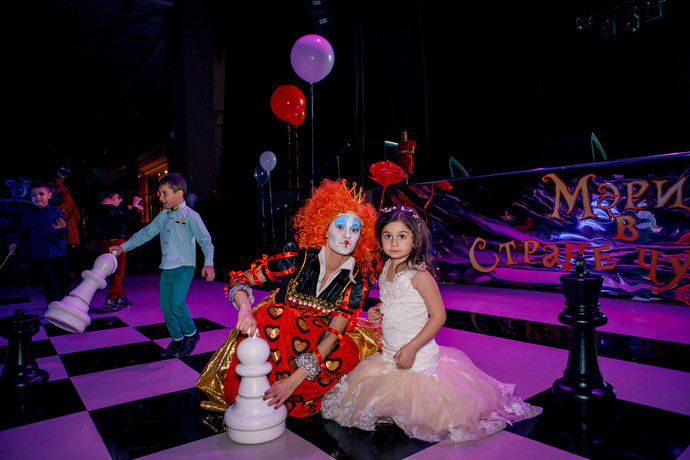 Такого детского дня рождения Благовещенск еще не видел! Что там привычные шарики-фонарики, разноцветные колпаки да пицца с тортиком. Пустите в свободный полет свою фантазию и получите масштаб праздника, который прошел 30 октября в Grand Arena Ostrova. Семья и друзья отмечали день рождения младшей дочери Каро Жамкочяна – Мэри. Малышке исполнился год. В честь этого сцена и зал Арены превратились в сказку «Мэри в стране чудес». Взрослых и детей встречали персонажи сказки Льюиса Кэрролла: Сумасшедший Шляпник, Червонная и Белая Королевы, Мартовский Заяц, Чеширский Кот и стражи. Сюжет сказки оказался сном маленькой Мэри, а гости – участниками событий. По оценкам экспертов event-индустрии, праздник мог стоить около 1 миллиона рублей. О необычной вечеринке Амур.life рассказал папа девочки Каро Жамкочян.