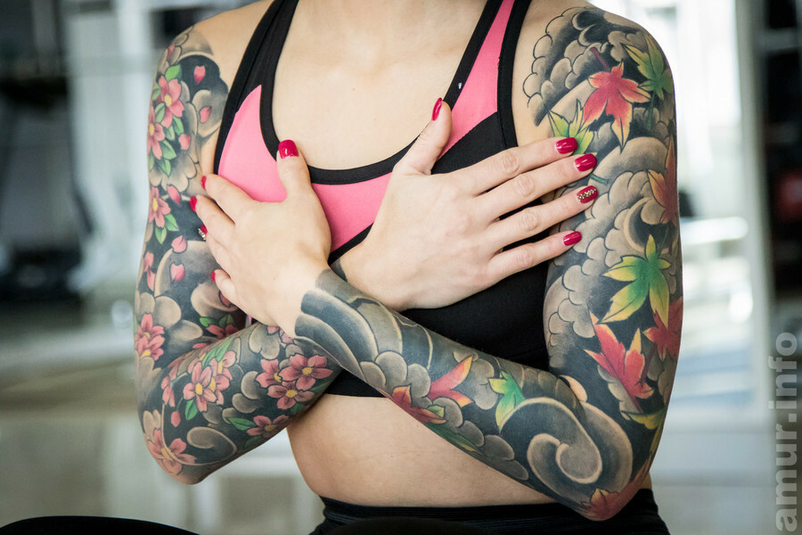 Было очень некрасиво, и я уже попросила что-нибудь сверху набить, чтобы скрыть. И у меня куча фантазий была, что можно там поверху нанести. Хорошо, что мой мастер – адекватный человек, не шел на поводу у моих фантазий. Он меня несколько раз разворачивал – подумай ещё, уходи, я не буду тебе ничего пока делать. В итоге он мне сам предложил сделать два «рукава» в японском стиле. На одной руке – весна, на другой – осень. Смысл в том, что я выгляжу моложе своих лет, но чтобы я не забывала про свои годы.