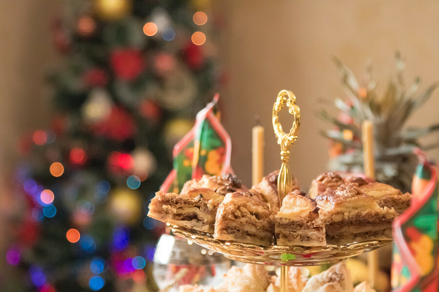 На Рождество за столом у нас собирается вся семья: бабушки, дедушки, братья и сёстры. Все они смогут найти блюда по вкусу. Это бутерброды, мясные изделия, которые мы делаем сами (колбасу в магазинах не покупаем), фаршированные блины, фрукты, орехи и пирожные. Вместо хлеба – армянский лаваш.