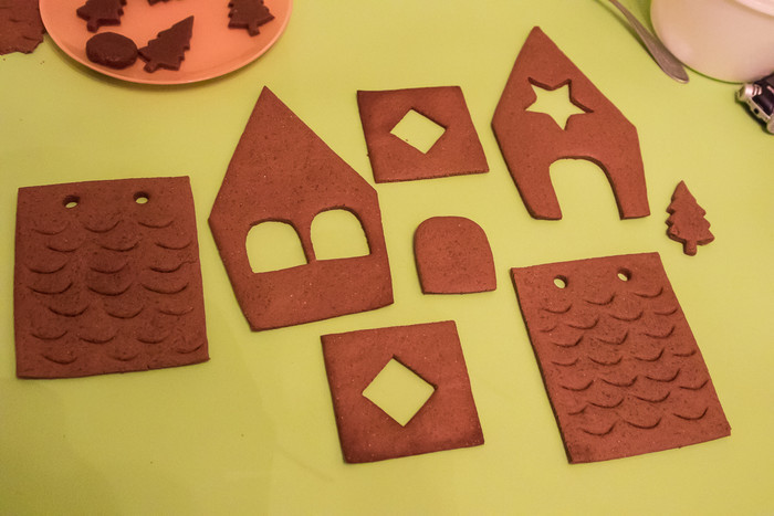 «После выпечки детали надо остудить. Пока одна остывает, в духовку идёт вторая, вместе с дверцей от предыдущей стены. А я в это время вырезаю боковые стороны для домика. В каком именно порядке мастерить детали, разницы нет», – рассказала девушка.