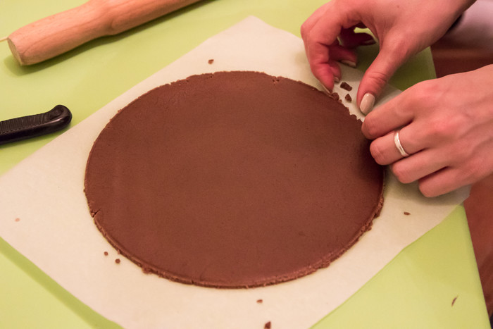 Сначала девушка раскатала тесто, предупредив, что делать это лучше на пергаменте.