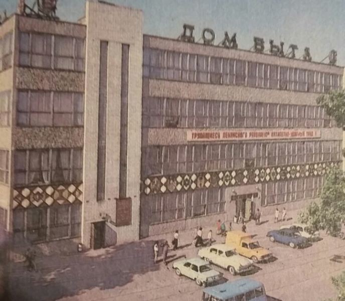 Не сразу удаётся узнать «Дом быта». Сейчас здание на углу Зейской и 50-летия Октября, покрыто рекламными вывесками. Оказывается, под ними на фасаде когда-то был декор.