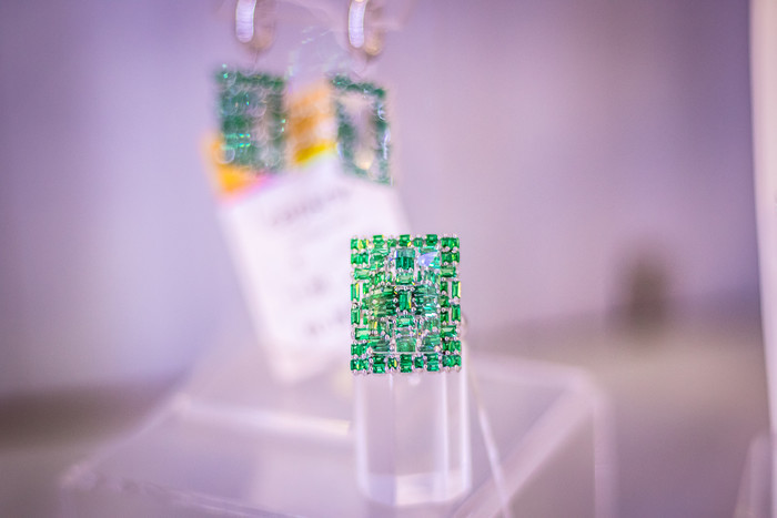 На втором этаже магазина представлены только золото и бриллианты. Новинка коллекции – весеннее кольцо с объёмными тюльпанами с белой и зелёной эмалью, и, конечно, бриллиантами. Украшение это эксклюзивное, существует в единственном экземпляре.