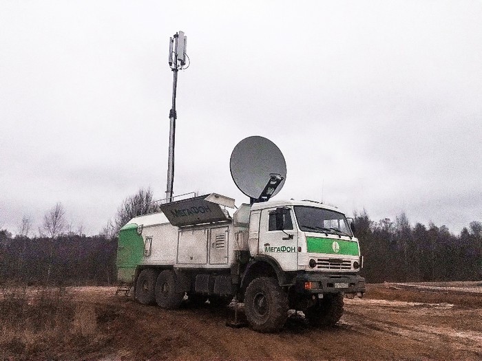 Мобильный комплекс МегаФона на базе КамАЗа, временно размещённый на месте спила кремлёвской ёлки, обеспечивает стабильное радиопокрытие. Уникальность мобильной станции заключается в её независимости от стационарных объектов связи, что позволяет разворачивать её практически на любой территории. С помощью комплекса можно обеспечить надёжный уровень сигнала в поле, лесном массиве и других местах, где нет жилой инфраструктуры. А там, где инфраструктура связи есть, можно значительно увеличить ёмкость сети – например, во время проведения массовых городских мероприятий, футбольных матчей, концертов и т.д.