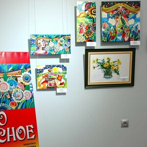 Свои работы выставили 15 авторов: Наталья Саяпина, Татьяна Ананьева, Анна Максименко, Анастасия Косенко, Илона Буланова, Анна Моисеенко, Евгения Намаконова, Елена Брест, Ольга Михеева и другие.