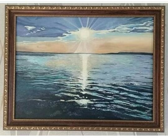 Другая моя работа - "Закат на реке Лене" - возникла также по фотографии. Брат подруги переправлялся в Якутск на пароме и фотографировал свой путь по реке Лене. Наш Дальний Восток очень красивый, его нельзя не писать».