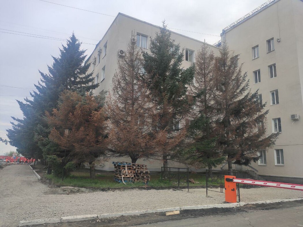 Срубили даже елочки под самый корешок. Деревья у здания «белого дома» совсем зачахли, и их, наконец, решили убрать. На фотографии, сделанной месяц назад видно, что с того времени здесь появилась и новая тротуарная плитка.