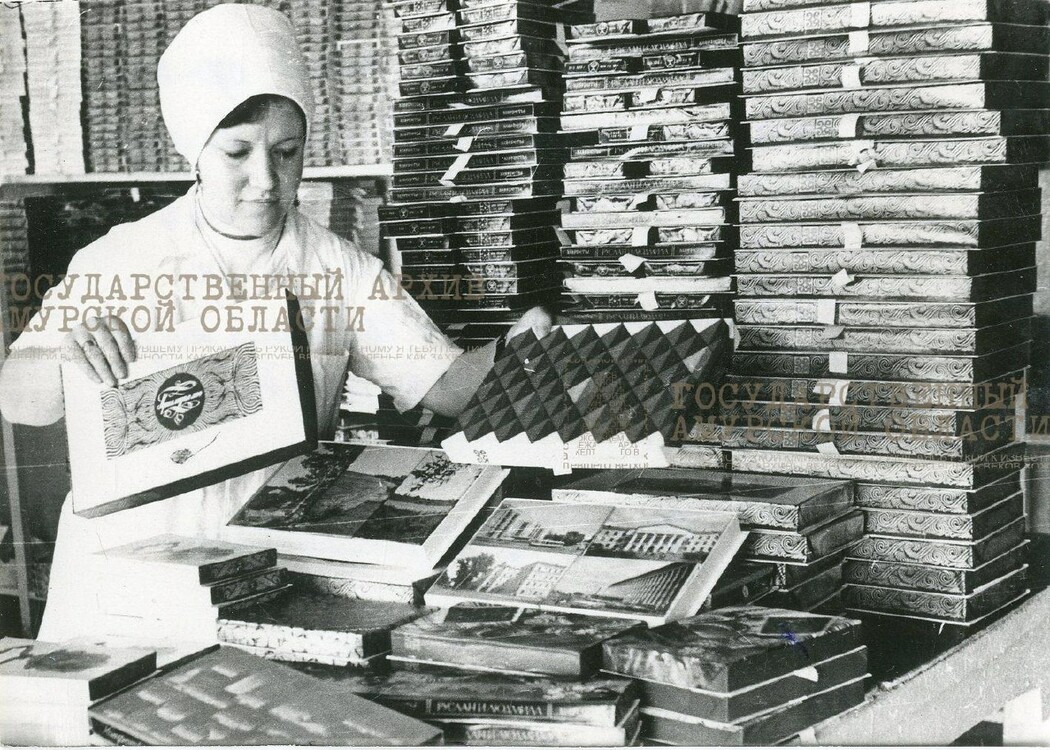 Кондитерская фабрика ежемесячно выпускала 17 видов конфет и отправляла не менее 10 тонн в торговлю и область. Впоследствии был увеличен выпуск в коробках до 30 видов, ежемесячно выпускалось 1 000 штук коробок шоколадных и глазированных сортов, сообщает Государственный архив Амурской области.