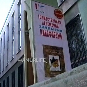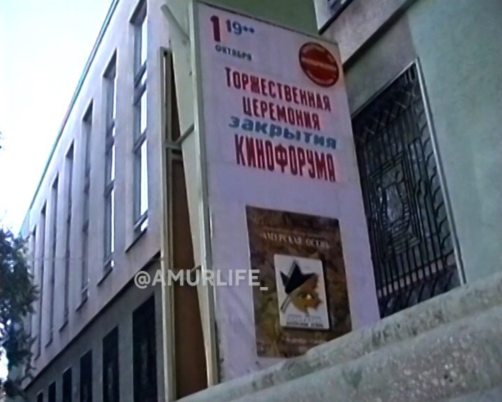 Кадры сняты 22 года назад, 18 сентября 2003 года, за день до открытия кинофорума. Здесь киноцентр на пересечении Зейской и Островского ещё называется кинотеатром «Россия». В его залах проходило большинство показов кинофорума.