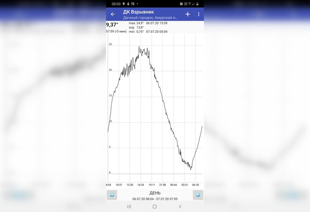 Наталья пояснила, что на даче установлены электронные температурные датчики. И, согласно им, 7 июля в 5 часов утра в 12 километрах от Тынды было почти ноль градусов.