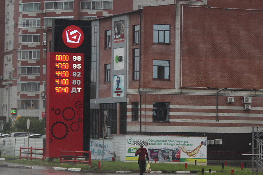 Средняя цена на бензин марки АИ-95 в Благовещенске в июле составила 47 рублей 25 копеек за литр, против 46,76 рубля по итогам первого месяца лета.