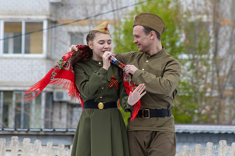 Ветеранам, проживающим в благовещенском специальном доме для одиноких престарелых (улица Зейская,319), артисты Общественно-культурного центра в честь праздника показали вокальные и хореографические номера. Праздничный концерт устроили под открытым небом на площадке перед зданием, сообщает пресс-служба городской администрации.