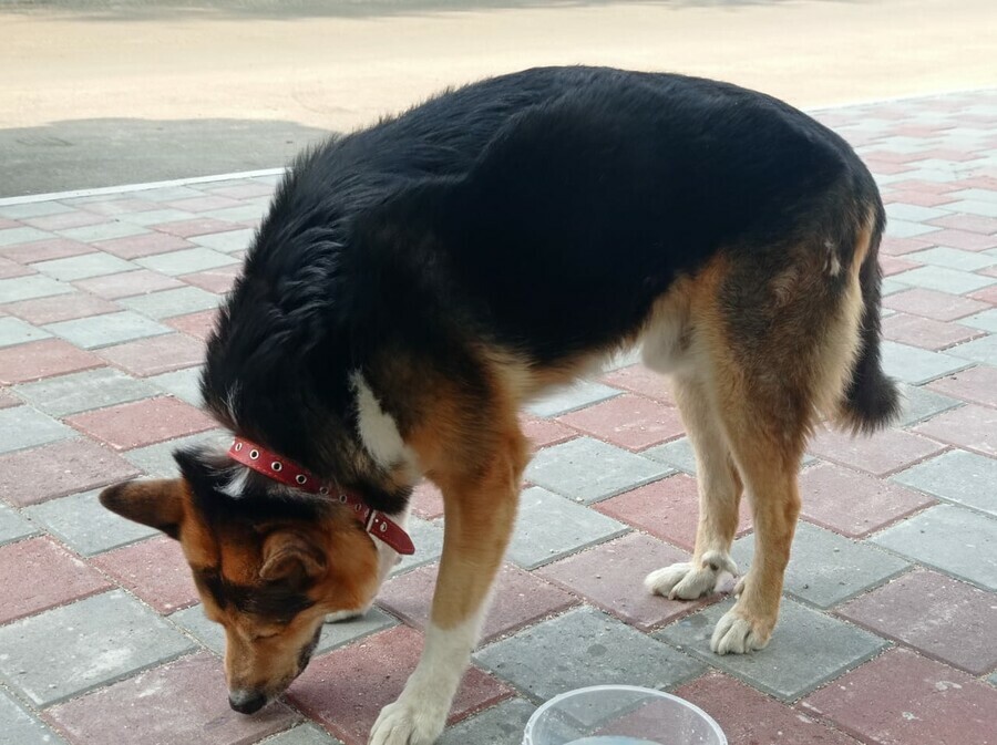 «Кобель, спокойный. Сидит полдня, не уходит. Разыскиваются хозяева, в нашем дворе такой собаки ни у кого нет», - рассказали жители дома.