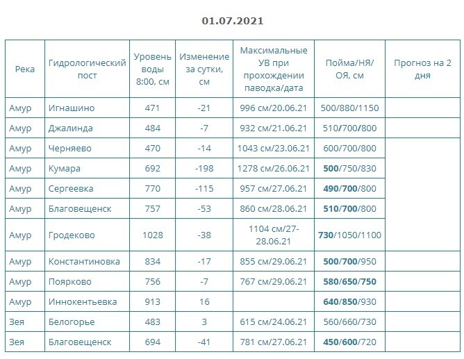 Амурские гидрологи опубликовали данные о текущей гидрологической ситуации в области. Практически во всех селах фиксируют спад воды. Больше всего потерял Амур в районе Кумары – минус 198 сантиметров.