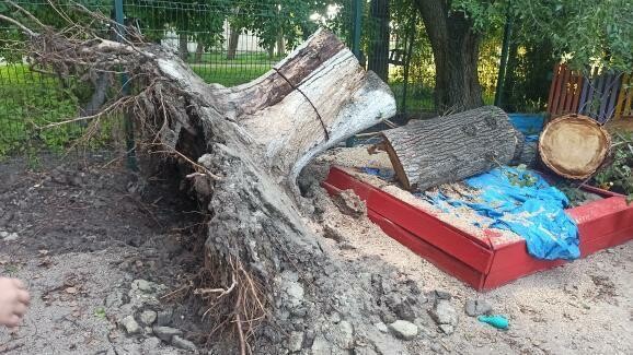 В областном центре сильный ветер повалил дерево на территории детского сада № 40. По словам благовещенки, произошло это еще в субботу, 24 июля.