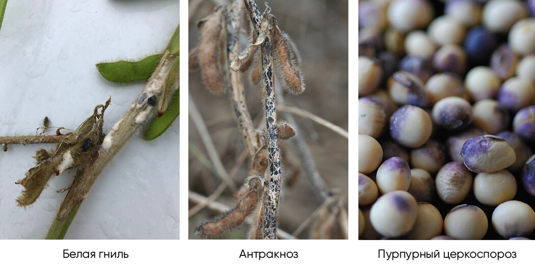 Для получения высоких урожаев сои в условиях Дальнего Востока необходимо использовать интенсивную фунгицидную защиту. На фоне растущего инфекционного фона высокую опасность на фоне болезней листового аппарата также представляют болезни бобов.
