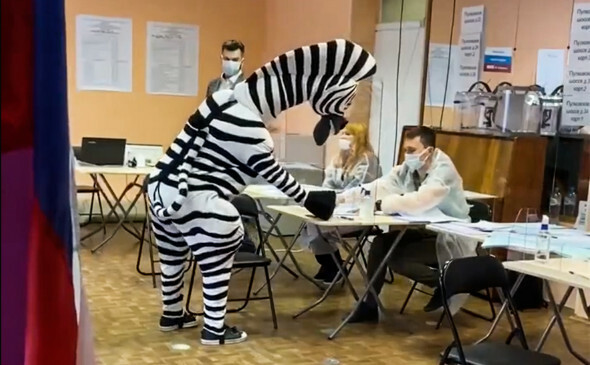 Также в Петербурге один из горожан решил решил позабавить других голосующих — он пришёл сделать выбор в костюме Марти из мультика «Мадагаскар», пишет Фонтанка.