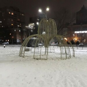 Подальше стоит еще одно украшение – фонтан. Раньше он тоже стоял на площади – в чаше настоящего фонтана. Но пока его, как и «ворота» на Ленина, не подсветили.