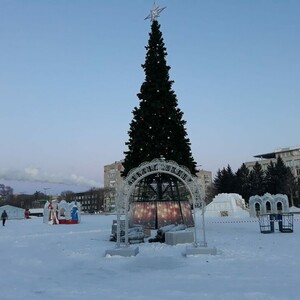 Ранее на площади установили фигуры медведей, Бабы-яги, Деда Мороза и Снегурочки, а также фотозону с тронами, подсветили поздравительные надписи.
