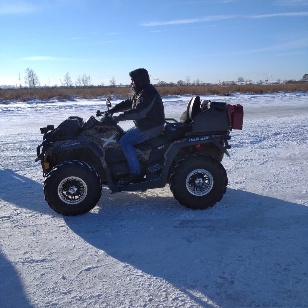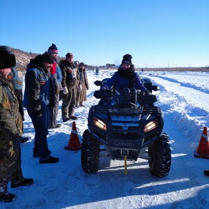 Поднимали настроение соревнованиями на квадроциклах. Для квадробиатлона подготовили трассу на льду с элементами дрифта и стрельбой из пневматического оружия.