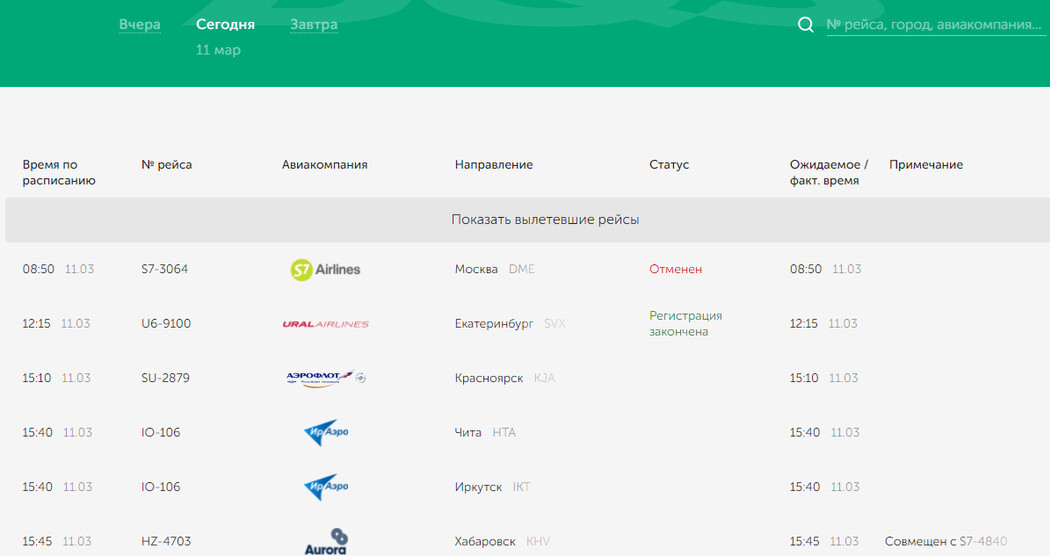 Как сообщал Amur.life, о спецавтомобилях, едущих в аэропорт, сообщили очевидцы. Рейс компании S7, который должен был вылететь в Москву в 8:50 11 марта, пока значится как отмененный.
