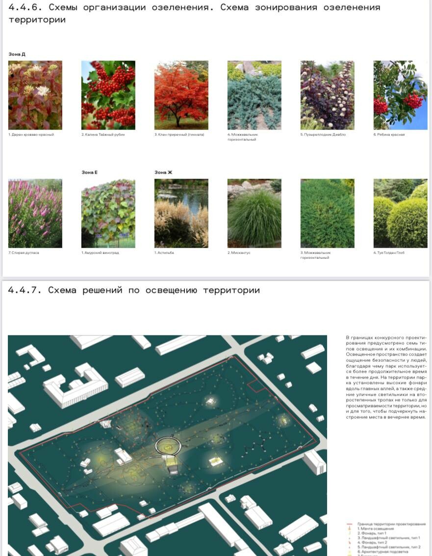 Владимир Александрович также показал фото проекта. Там планируют создать спортивные зоны, которые будут включать в себя памп-трек. Кроме того, показан вид парка в зимнее время.