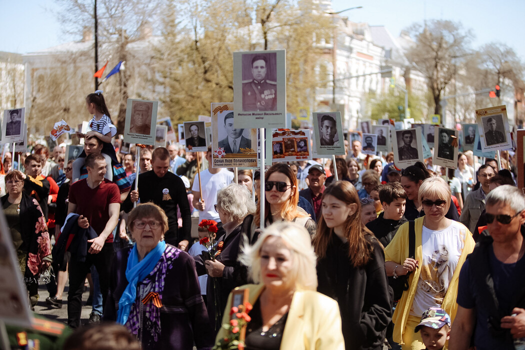 В Амурской области 9 мая в шествии Бессмертного полка в городах и селах прошли 75 тысяч человек. Из них 30 тысяч вышли с портретами ветеранов Великой Отечественной войны в Благовещенске.