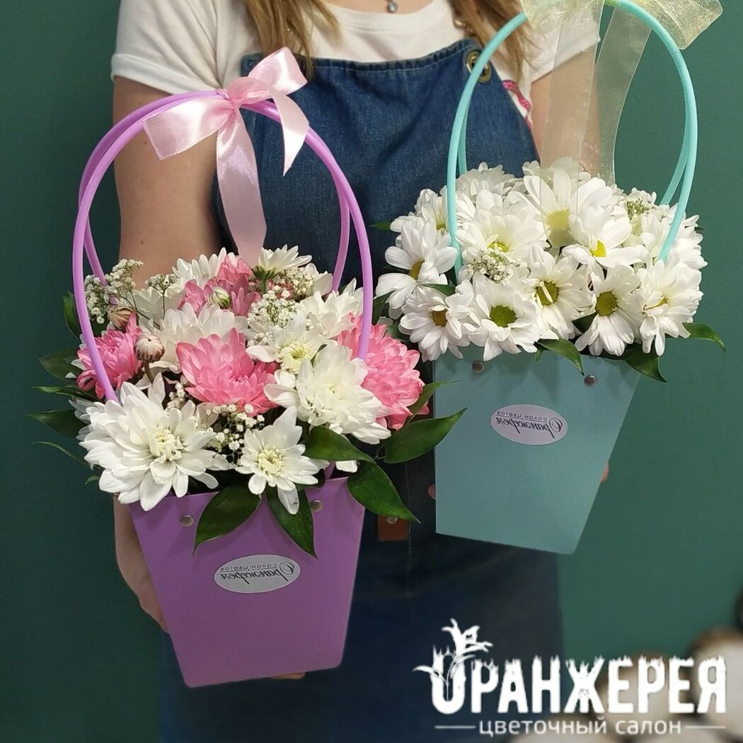 Есть очень симпатичные и удобные букеты – они сделаны в виде сумочки, ребёнок держит его за ручку. Деления на композиции для мальчиков и девочек не наблюдается – в цветах сплошной унисекс.