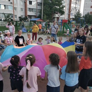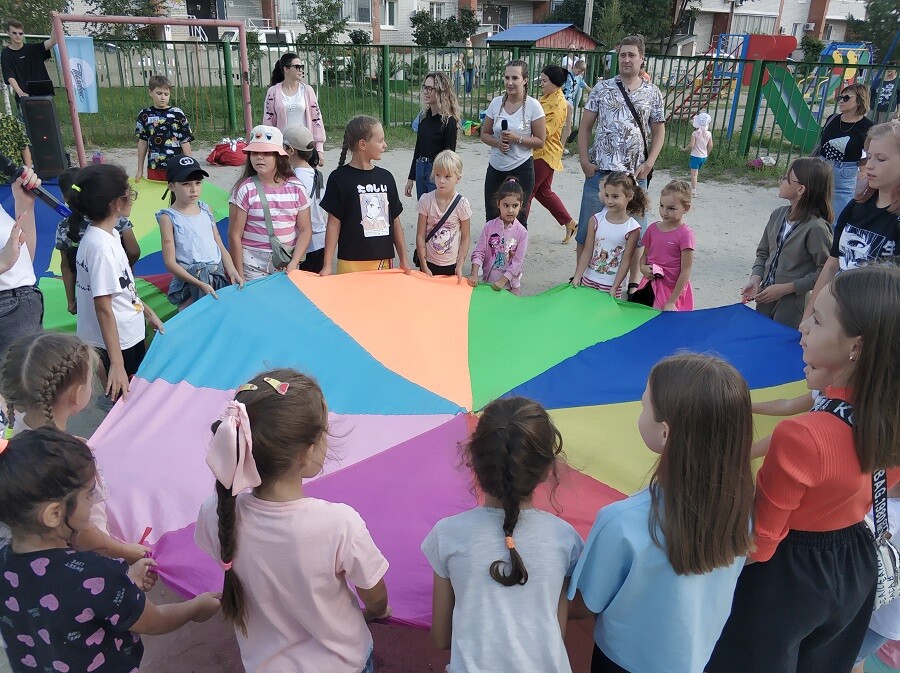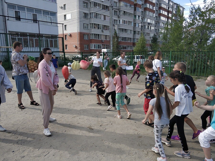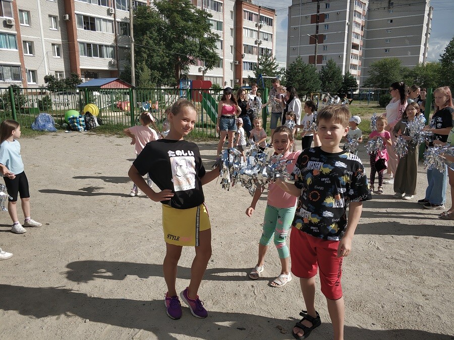 Конечно, больше всего мероприятие привлекло детей. На площадке собрались ребята из разных домов и разных возрастов. В течение часа для детей проводили спортивные конкурсы, танцы, игры на сплоченность.