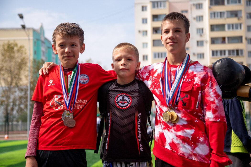 Парад, посвященный открытию нового стадиона, возглавил 11-классник Гор Аракелян – кандидат в мастера спорта, призер Европы, чемпион международных и российских соревнований, многократный чемпион ДФО по киокушинкай карате.