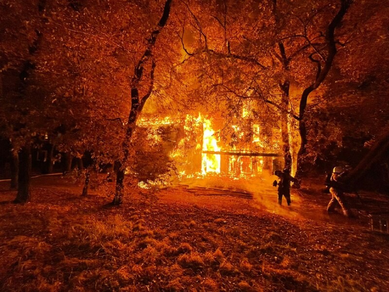 На момент прибытия огнеборцев строение уже полностью объяло пламя. Столб огня был таким высоким, что его видели издалека.