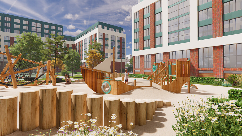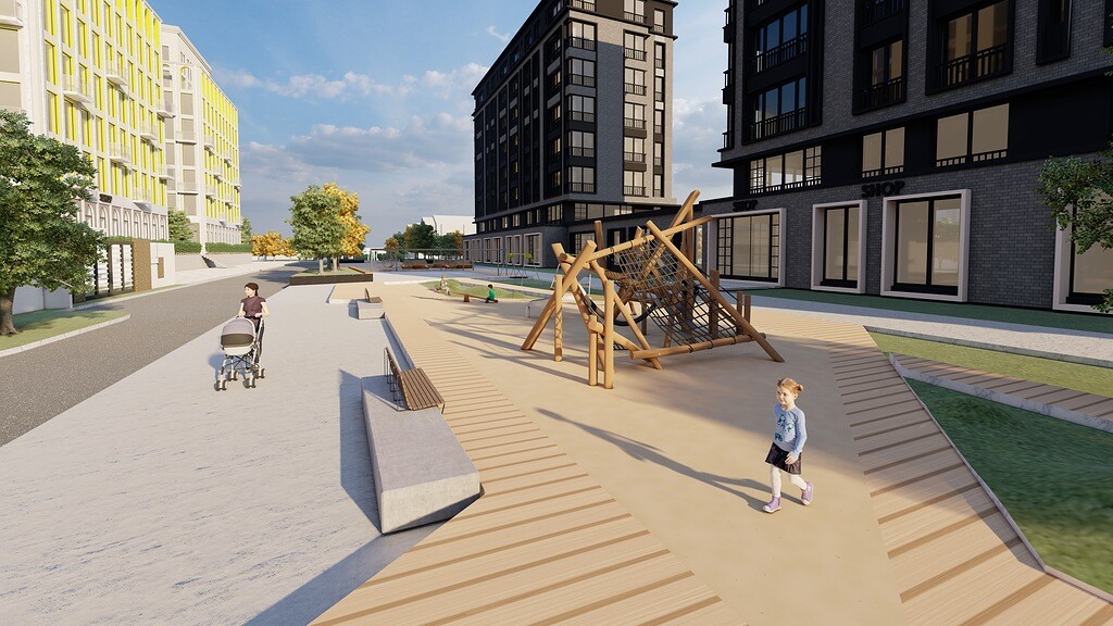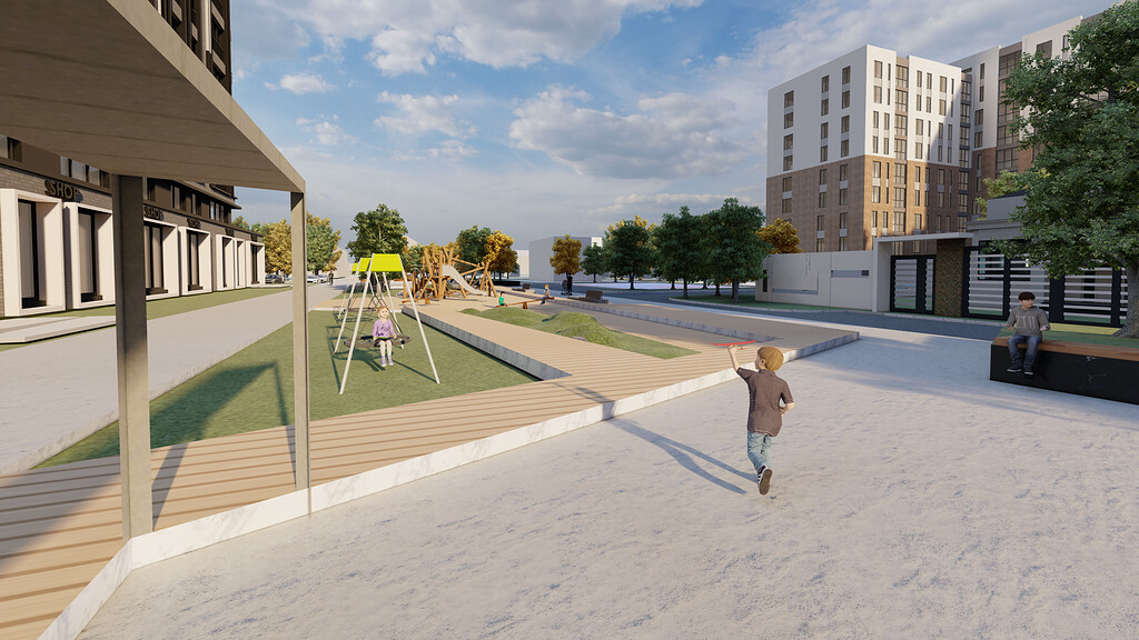 В связи с этим необходимо предусмотреть современную среднеэтажную жилую застройку, которая способна удовлетворить разнообразные предпочтения пользователей, уютные дворовые пространства и озелененные территории общего пользования, площадки для активного и пассивного отдыха. Наполнить территорию общественными функциями и сформировать локальные центры общественной жизни.