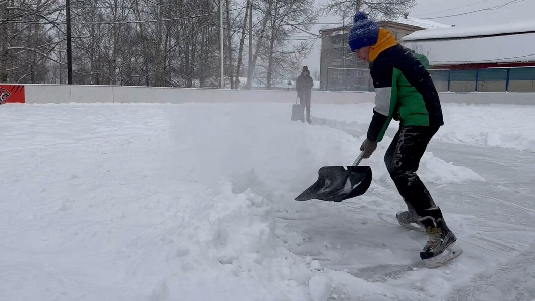 В городе Сковородино Амурской области из-за сильных снегопадов хоккейная секция попала в затруднительное положение. Снег с катка будущим хоккеистам приходится убирать вручную из-за отсутствия снегоуборочной техники.