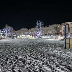 Еще осталось развесить на деревьях снежинки и установить еще одну светодиодную елку.