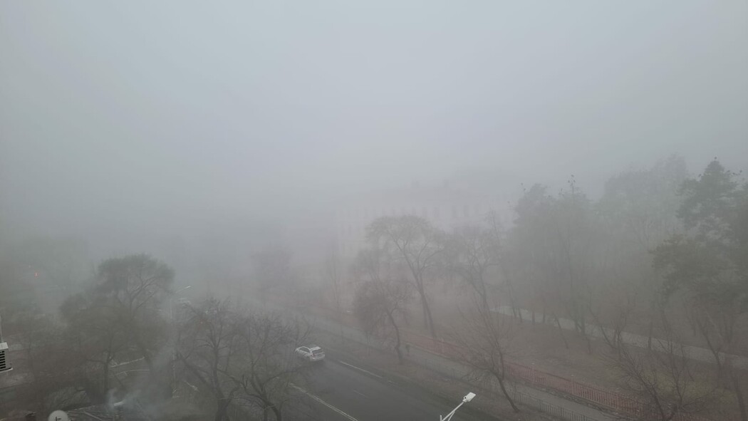Предметы и здания практически не видны на расстоянии нескольких десятках метров.