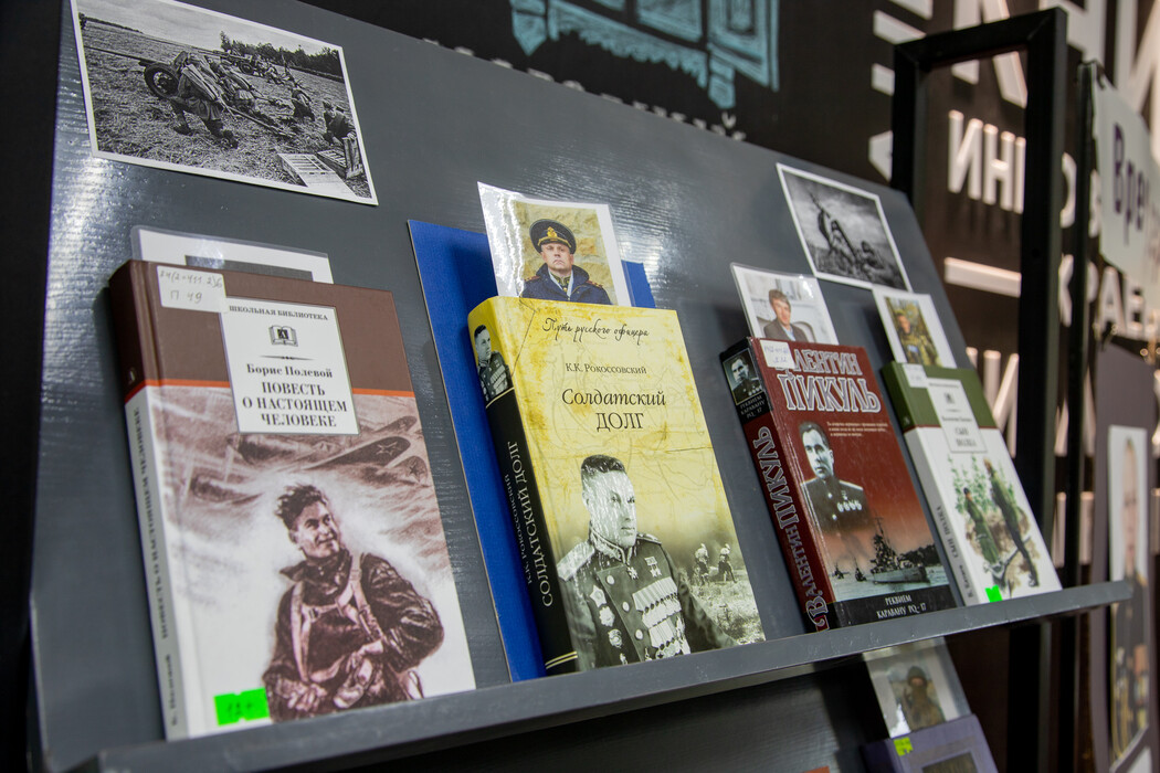 Кроме полки с любимыми произведениями героев СВО библиотекари также собрали полку с раритетными изданиями начала и середины 20 века, фотографиями и подлинными документами того времени.
