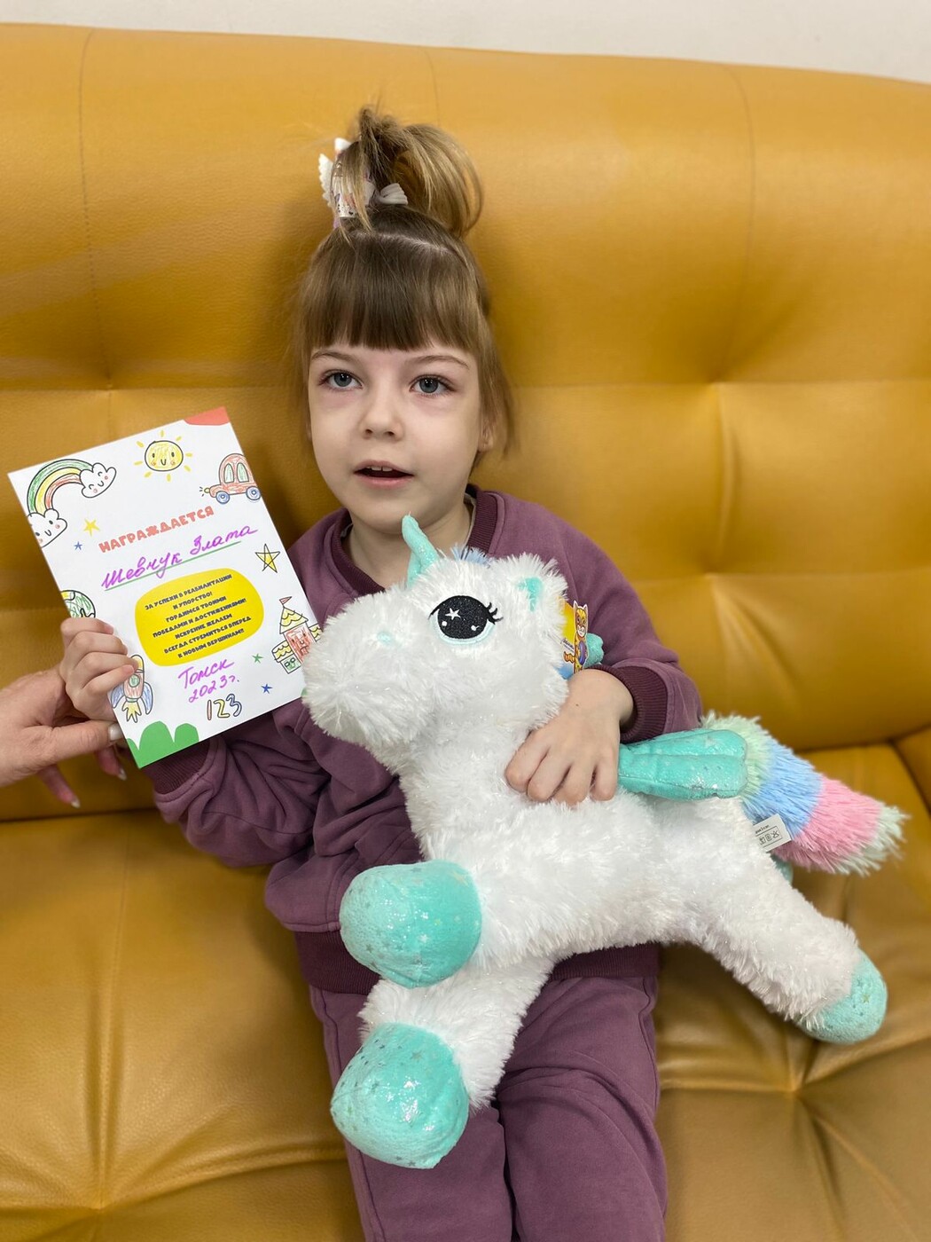 «Мы только в апреле приехали с очередной реабилитации в Томске. Злата начала ползать, передвигаться в ходунках потихоньку, спина тоже крепче стала, она стала более уверенно держать спину. Речь появилась полгода назад. Очень существенный скачок в речи, она до этого говорила только отдельные слова, а тут начала говорить целые предложения. Логопед говорит, что она очень перспективная, главное, заниматься. У Златы динамика очень хорошая. Когда она родилась, врачи сказали, что у нее атрофия мозга, что она будет лежать, что она будет овощем, но к пяти годам мы много чего достигли. Сейчас нас врачи хвалят и ставят 3-4 степень ДЦП, то есть это заболевание не такое тяжелое. У нас есть возможность, что Злата, пусть и с поддержкой, но пойдет», – поделилась мама Златы.