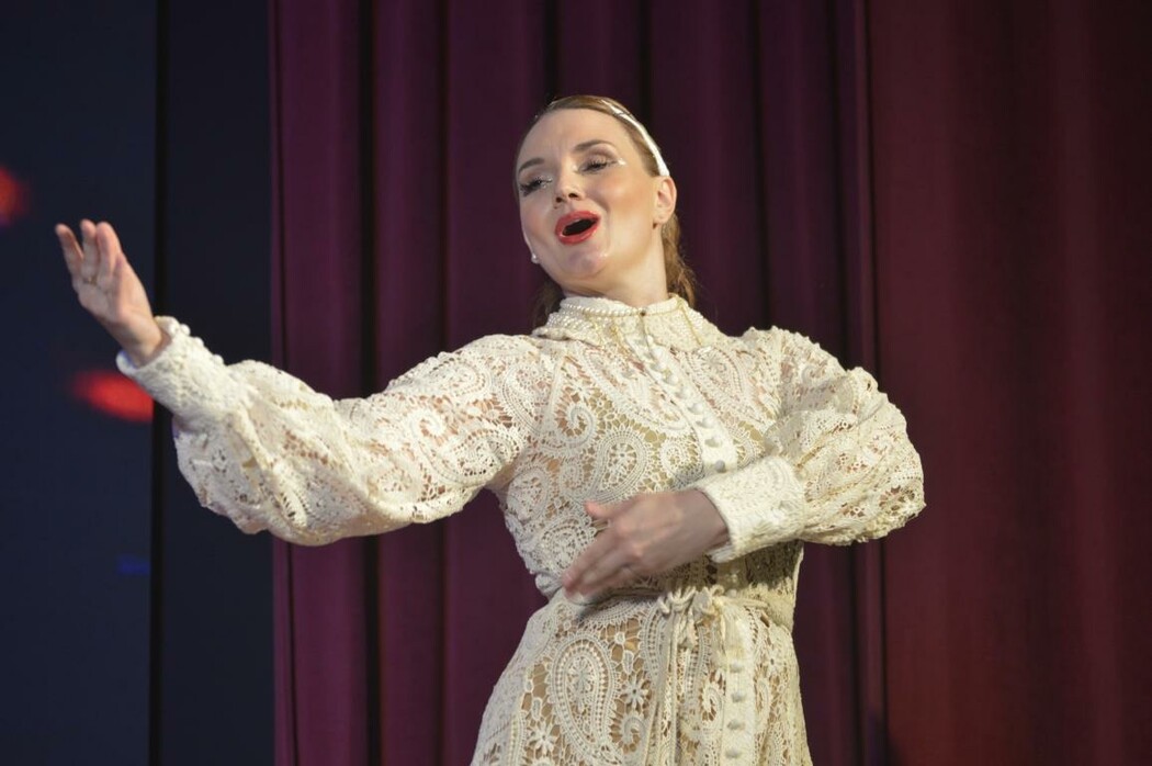 Зал поддержал Екатерину Семенову аплодисментами и вместе с ней спел песню «Темная ночь», сообщает пресс-служба администрации Белогорска.