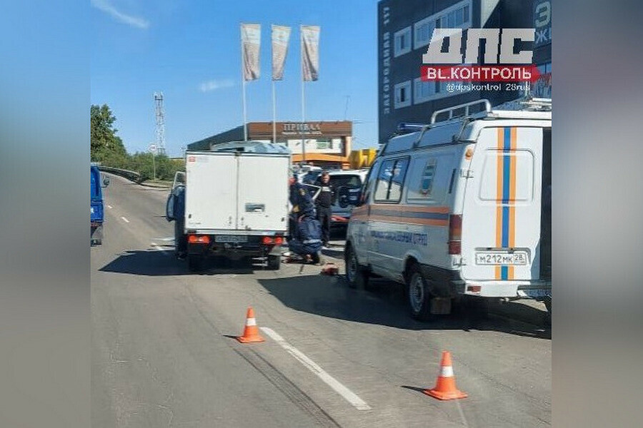 «На месте работают медики, спасатели и полиция. Водителя грузовика вырезают из машины», – сообщает Telegram-канал dpskontrol_28rus.