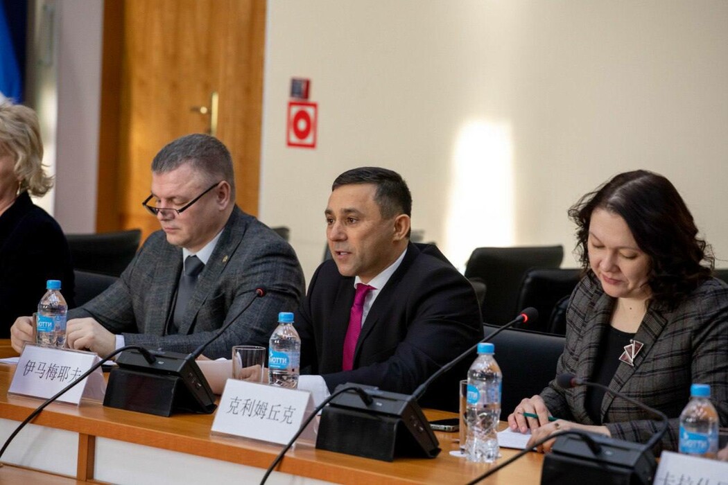 В Благовещенск прибыла делегация из китайского города-побратима. Гости – члены Народного правительства Хэйхэ – поздравили мэра Олега Имамеева и благовещенцев с наступающим Новым годом.